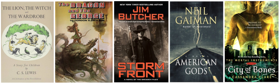 Of course, The Lion, the Witch, and the Wardrobe (1950) by C.S. Lewis can be considered the most prominent example of low fantasy both for being the first to codify this genre and for its enduring popularity. Other great examples include The Dragon and the George (1976) by Gordon R. Dickson, Storm Front (2000) by Jim Butcher, American Gods (2001) by Neil Gaiman, and City of Bones (2007) by Cassandra Clare.